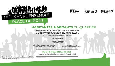 La Ville de Lyon et les Mairies des 3e et 7e arrondissement convient les habitantes et habitants du quartier Guillotière à une réunion publique de restitution de ces ateliers le mercredi 30 juin de 19h à 21h au Palais de la Mutualité, en présence du Maire de Lyon, Gregory Doucet, et des Maires du 3e et 7e arrondissement, Véronique Dubois Bertrand et Fanny Dubot.