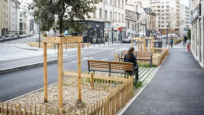 - création de 4 placettes (Garibaldi, Domer, Crestin et Tchécoslovaques) aménagées et végétalisées grâce à la place gagnée lors de la requalification de la rue ;