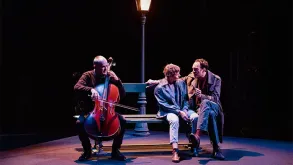 Loin de Garbo est un spectacle musical poignant sur l’exil et la résilience, porté par la musique et la mémoire. On y suit Greta et Darius, un couple de tailleurs, leur bébé Milo et l’Oncle Raskine, mystérieux personnage qui ne parle qu'à l'aide de sa contrebasse, fuyant la dictature qui s’installe à Garbo. Dans cette ville où la liberté est peu à peu muselée par des interdictions absurdes, ils choisissent de partir, traversant un océan d’incertitudes vers un supposé Eldorado.