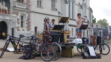 Les musiciens et musiciennes de La Poursuite arrivent à vélo, avec leur scène roulante, pour vous proposer une échappée musicale.