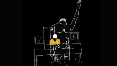 "Histoire autobiographique où je raconte les vingt ans que j'ai passé avec un bras en l'air jusqu'à ma mort". Tim Crouch.